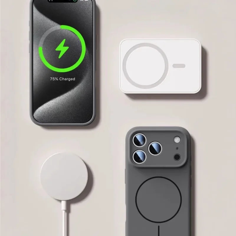 Luxury Liquid Silicone Case for iPhone 17 Air 16 16E 15 14 13 12 11 Pro Max Plus Soft For Magsafe Magnet Shockproof Matte Cover