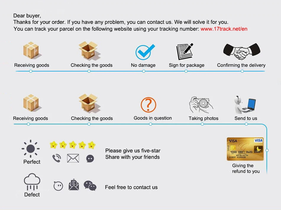 • Expédition Rapide : Toutes les commandes sont traitées et expédiées depuis notre entrepôt sous 24 à 48 heures ouvrables.Délais de Livraison : Une fois expédié, votre colis arrive généralement sous 3 à 7 jours ouvrables, selon votre localisation.Suivi de Commande : Dès que votre commande quitte notre entrepôt, vous recevrez automatiquement un e-mail contenant votre numéro de suivi pour consulter l'acheminement de votre colis en temps réel.Emballage Soigné : Nous apportons un soin particulier à l'emballage pour garantir que vos produits arrivent en parfait état.