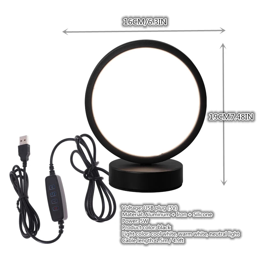 Nordic Style LED Table Lamp Plug Three Tone Light Circular Atmosphere Wrought Iron Design for Bedroom Study
